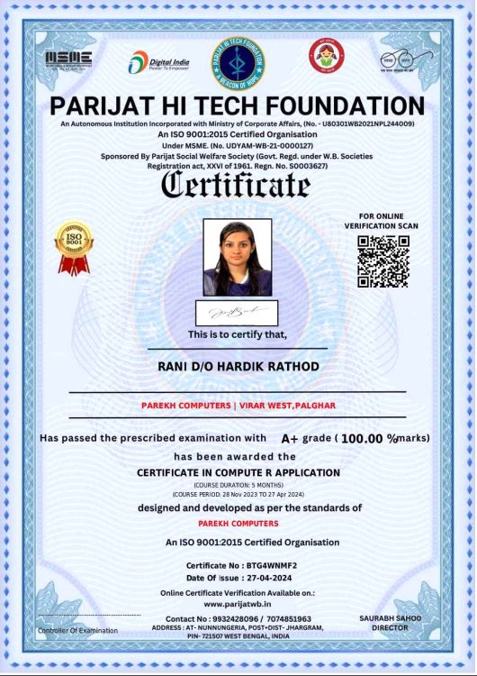 WELCOME TO PARIJAT HI TECH FOUNDATION. An Autonomus Institution Incorporated with Ministry of Corporate Affairs (No. - U80301WB2021NPL244009). Govt. Of India, An ISO 9001 : 2015 CERTIFIED INSTITUTE, Under MSME (NO. - UDYAM-WB-21-0000127). Sponsored By Parijat Social Walfare Society (Govt. Regd. under W.B. Societies Registration act, XXVI of 1961 Regn. No. S0003627).